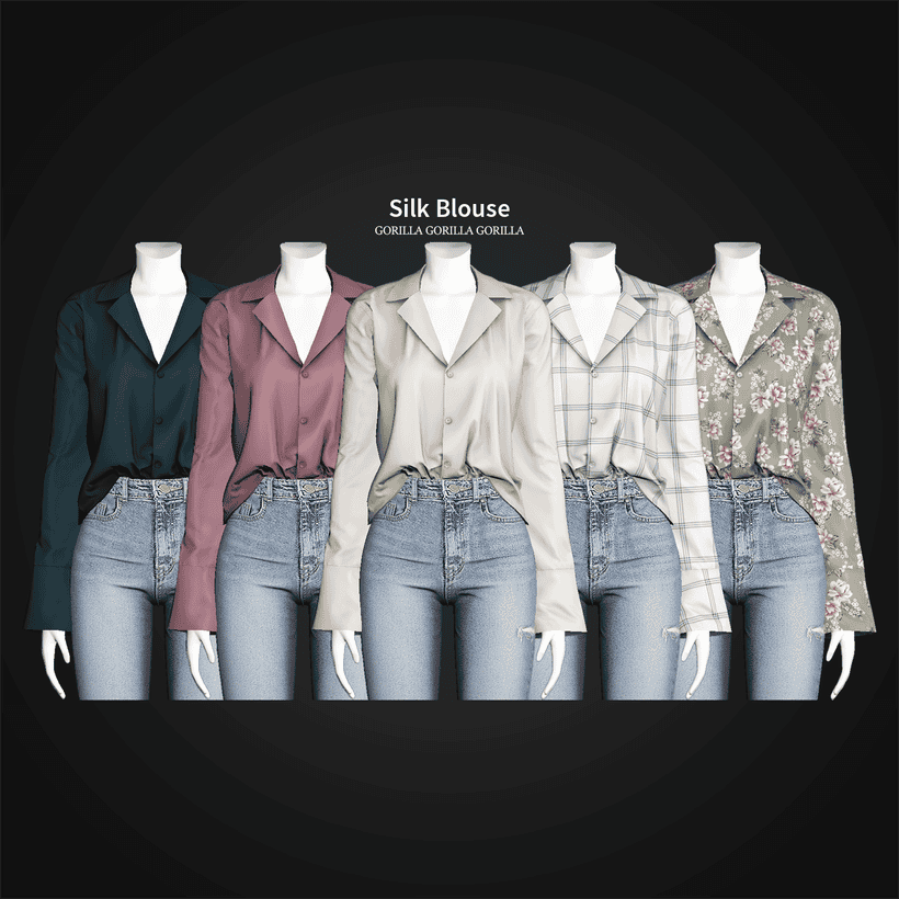 For female Sims, the Silk Blouse is a basic, relaxed blouse. It adds realism to your game with its loose fit and realistic folds and textures. The blouse is available in forty samples, ranging from solid hues to floral textures and leopard designs. This basic blouse can be worn with formal pants or jeans from your Sims 4 clothing collection.