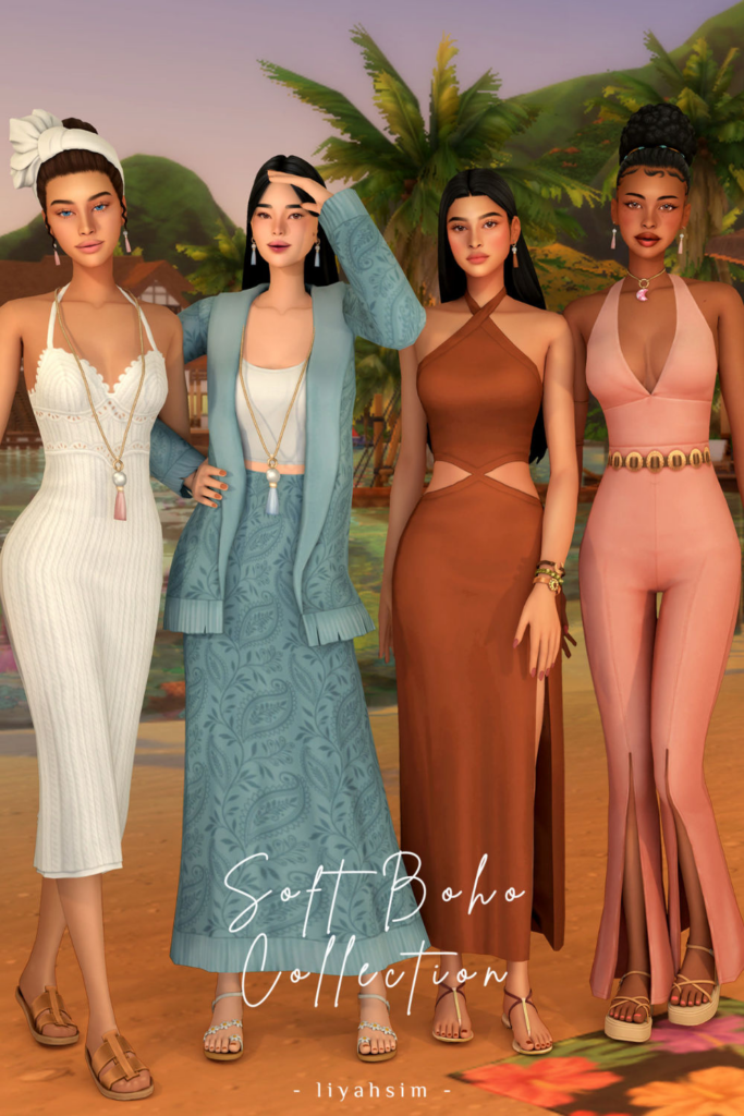 Your female Sim can wear a variety of full-body ensembles from the Vintage Dress Set. These dresses create a straightforward yet gorgeous style by combining long skirts with casual tops. There are fifteen variations of the dress, so you can choose a look that works for your Sim. To add the Sims 4 clothing cc to your modifications folder, simply click the post’s download link.