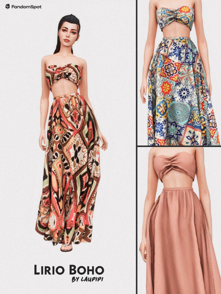 Get this one from Cinnamon-sims if you like dressing your Sim. The Cordelia Dress is an exquisite A-line dress with ruffles. Your female Sim has a gorgeous form thanks to the flared bottom and tight waist. The dresses are available in 20 colors, each with unique floral motifs and textures to give your ensemble a delicate, feminine touch.
