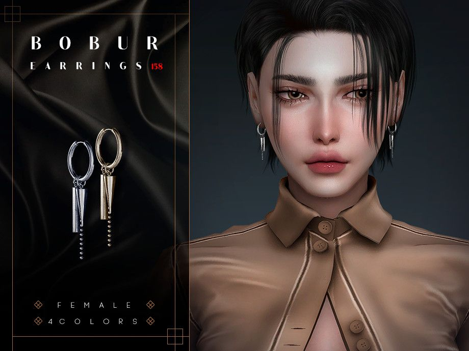 A pair of contemporary male earrings with modest, simple designs, studs, and hoops. They offer personality to casual or fashionable attire and fit both male and female Sims.
