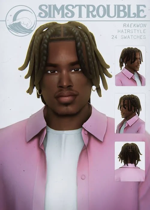 Raekwon introduces a commanding dreadlock ensemble rendered with structured texture and kinetic volume. The locks cultivate a bold presence, perfect for Sims rooted in creativity, edge, or urban vibrancy. A rich selection of swatches—earth-born tones, jewel shades, or vivid neons—encourages fearless experimentation and character distinction across genders.