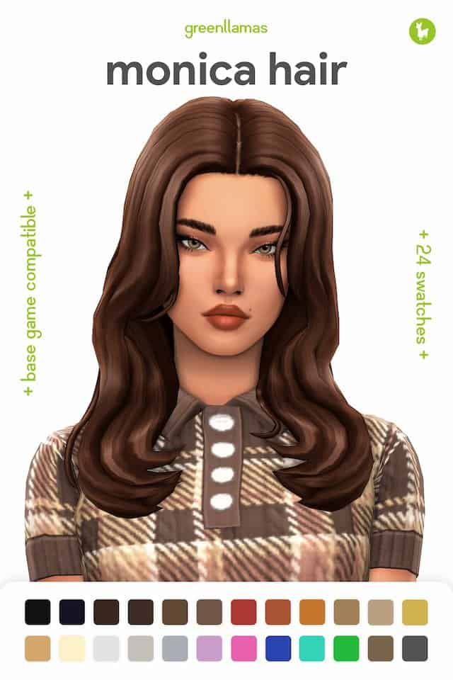 Monica showcases a mid-length, streamlined mane graced with discreet layers for an effortlessly refined finish. Its adaptability makes it suitable for career-driven, everyday, or soiree-ready Sims. With an extensive catalog of 24 tonal variations—cool neutrals, daring pigments, or understated classics—it elevates facial features without overwhelming them. Perfect for narrative-heavy gameplay where subtle expression speaks volumes.