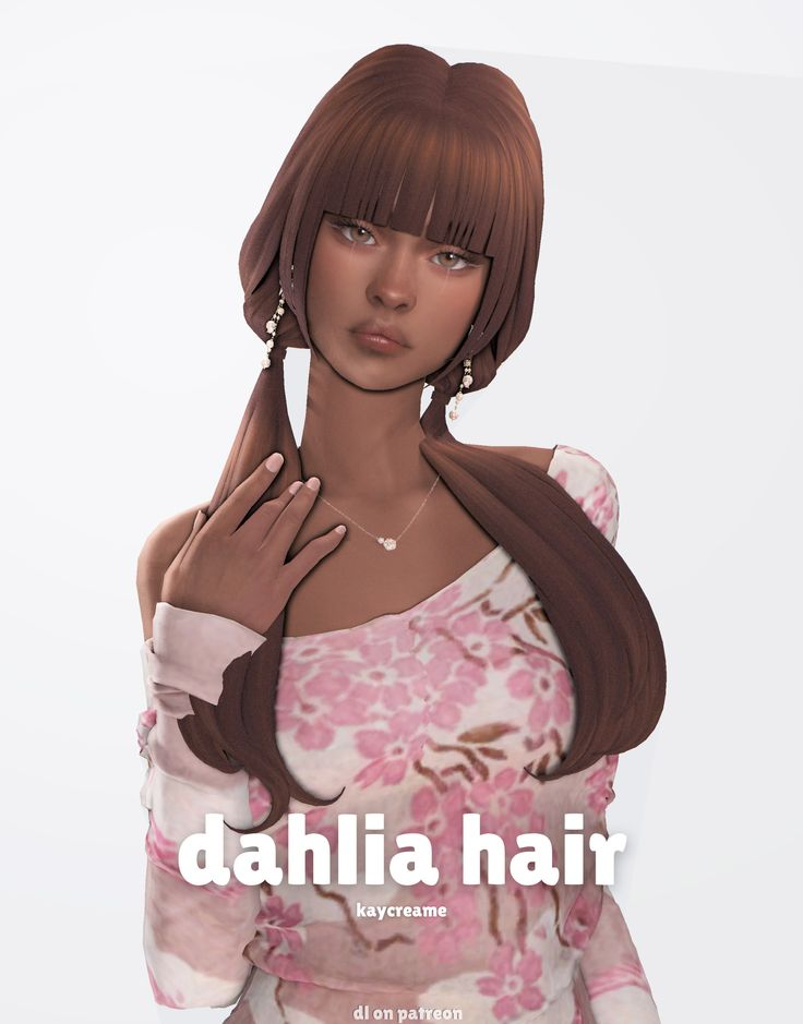 Kayla’s sweeping tresses gather gracefully into a claw-clipped arrangement, striking equilibrium between utility and poise. The languid waves retain body and charm, ideal for Sims who oscillate between carefree daytime wanderings and chic evening endeavors. With a bouquet of subdued and spirited color variants, this style injects a breezy yet dignified charisma into any personality arc.